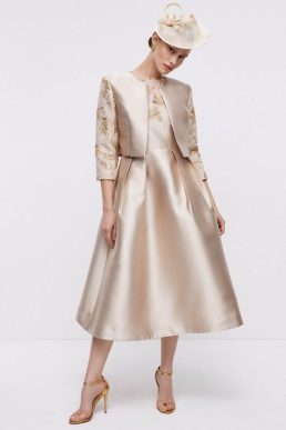 Joanna Hope Latte 3D Lace Scallop Sleeve Satin Midi Dress LatteJoanna Hope Latte 3D Lace Scallop Sleeve Satin Midi Dress Latte