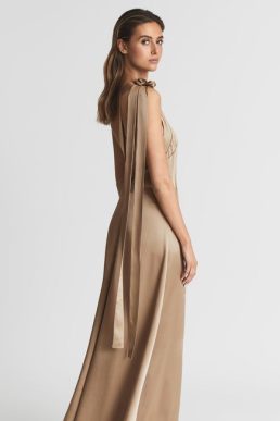 TFNC Skirt & Stiletto Bias Cut Satin Maxi Dress, Ivory