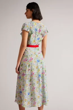 Ted Baker Maurier MIB Floral Printed Midi Dress, Multi/Blue
