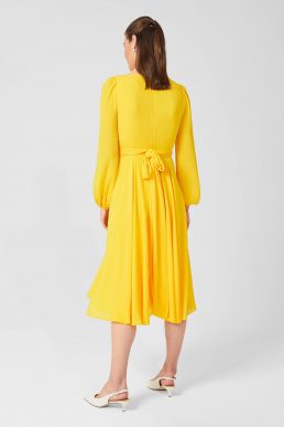 Hobbs Sadie Fit And Flare Sleeve Dress Yellow