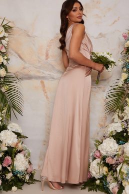 Chi Chi Cowl Neck Satin Pleated Midi Bridesmaid Dress Champagne