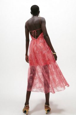 Coast Fleur Embroidered Organza Midi Dress Pink
