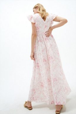 Coast V Neck Broderie Maxi Dress Pink Light Blush