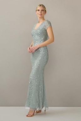 Adrianna Papell Women’s Beaded Mermaid Gown Special Occasion Dress, Frosted Sage, 14
