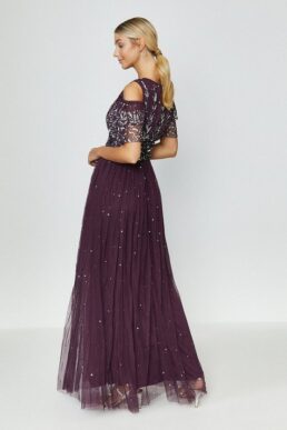 Coast Cold Shoulder Embellished Maxi Dress Berry Merlot Purple