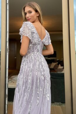 Maya embellished cap sleeve maxi dress in lilac
