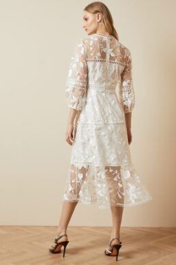 Karen Millen Feather Bardot Dress Ivory