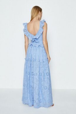 Coast Broderie Tiered Frill Maxi Dress Light Blue