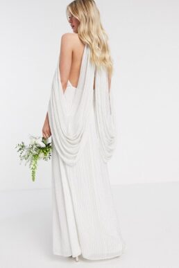 ASOS EDITION Samantha beaded wedding dress with drape sleeves, Ivory