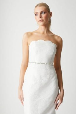 Coast Scallop Detail Jacquard Column Wedding Dress, 16, Ivory