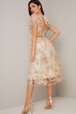 Chi Chi Floral Embroidered Betty Dress Nude Champagne