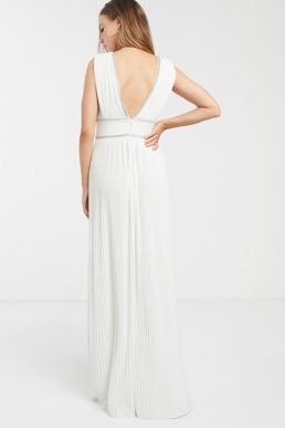 ASOS DESIGN premium pleat maxi dress with diamante trim Ivory