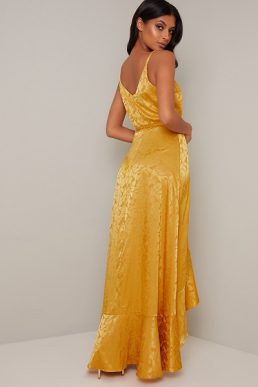 Chi Chi Marcia Satin Ruffle Maxi Dress Yellow Mustard