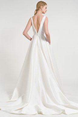 Jenny Yoo Spencer V Neck a Line Taffeta Gown Wedding Dress Dark Ivory