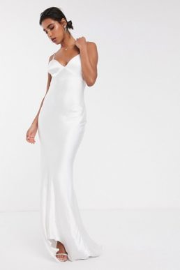 ASOS EDITION satin cami wedding dress with train, Ivory