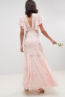 ASOS DESIGN Bridesmaid Embellished Maxi Dress Blush Pink