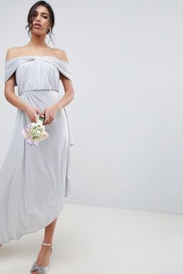 ASOS DESIGN Bridesmaid Ruched Knot Maxi Dress Grey Silver