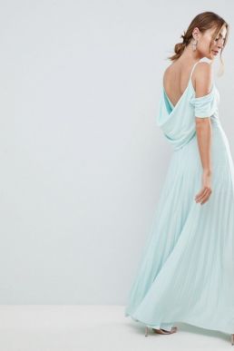 ASOS DESIGN Cold Shoulder Cowl Pleated Maxi Dress, Mint