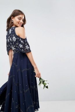 ASOS WEDDING Embellished Cold Shoulder Midi Dress, Navy