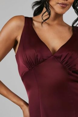 Coast V Neck Bow Detail Satin Bridesmaid Dress, Malbec
