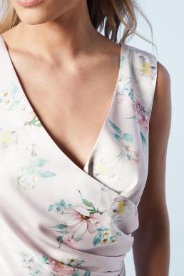 Coast Petite Spring Posy Printed Satin Ruche Waist Bridesmaids Dress, Blush