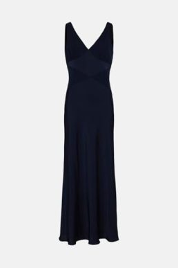 Oasis Contrast Satin Bow Back Bridesmaids Maxi Dress, 10, Navy