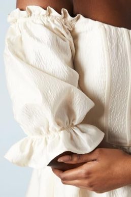 Oasis Off The Shoulder Puff Sleeve Jacquard Bridal Mini Dress, 8, Ivory
