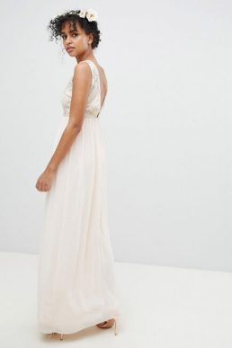 TFNC Embellished Back Detail Maxi Bridesmaid Dress, Grey