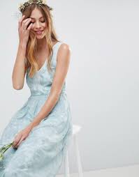 ASOS DESIGN Design Bridesmaid Delicate Lace Sheer Insert Maxi Dress, Pale Blue