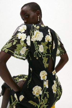 Special occasions have met their match in the form of Coast’s beautiful black Lemon Rose Angel Sleeve Open Back Midaxi Dress. This stunning design makes dressing up an utter joy.