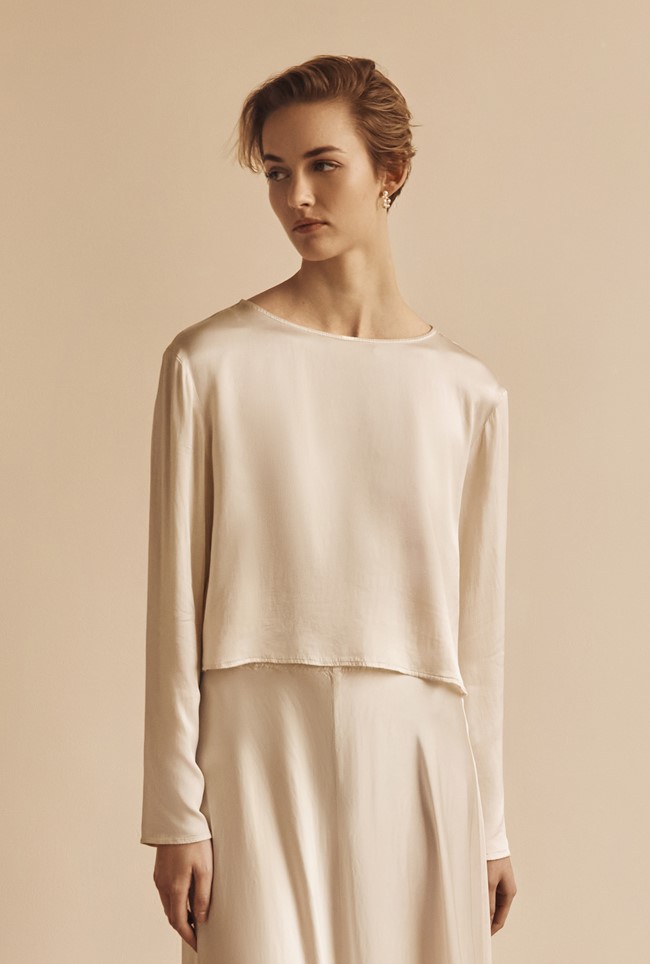 Evelyn is minimal in design but creates an effortless silhouette when paired with our Colette skirt. Oversized in style and cropped in length, this is a playful twist on our classic Alix top.