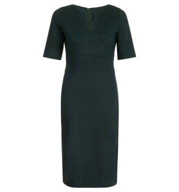 The gorgeous green Cheryl Sleeve Shift Dress from Hobbs features a V slit neckline, a cinched in waist and a fitted skirt. The stunning spring/summer dark green hue adds a flattering touch whilst the knee length and sleeves create an elegant style.