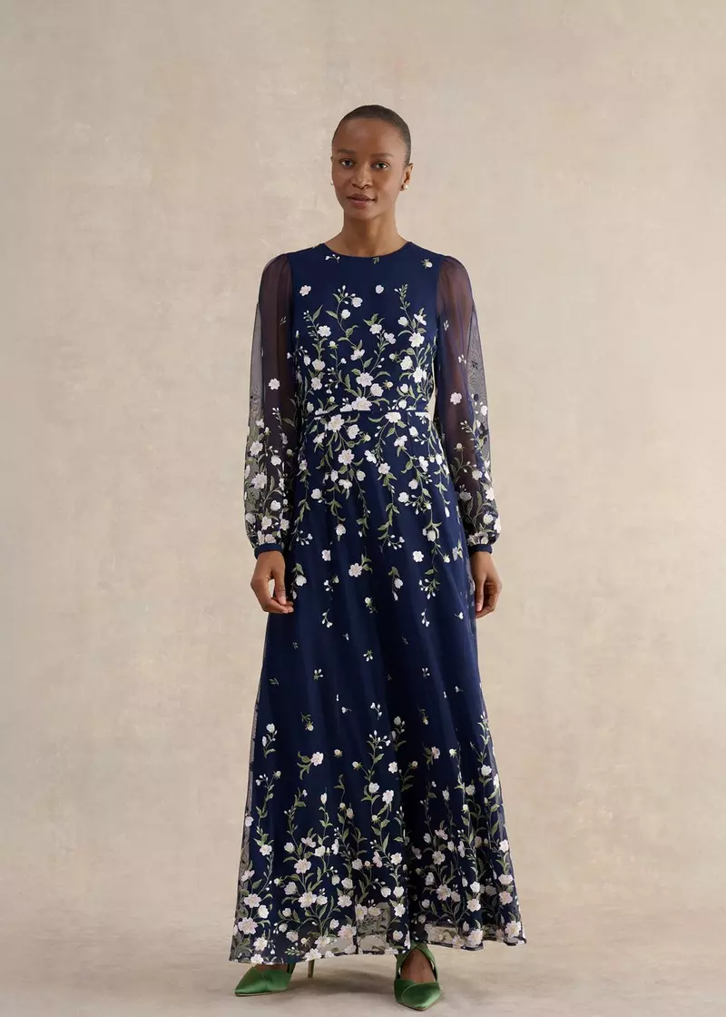 Hobbs Judy Embroidered Maxi Dress Midnight Navy Multi