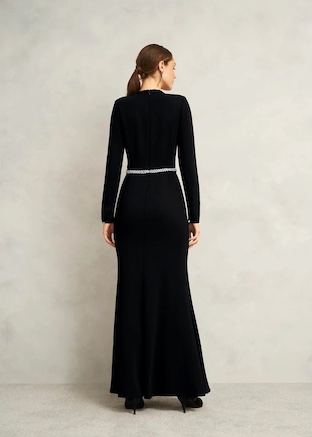 Imbued with black tie appeal, the Meryl dress is cleverly tailored to sculpt and define with a removable diamante belt.