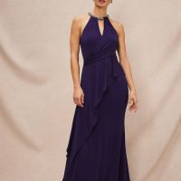 A stunning style that’s perfect for special occasions or as a bridesmaid dress. Designed in a deep purple shade, our Harmony dress features a round embellished neckline, wrap bodice and fluttery detail on the back of the dress, creating amazing movement as you walk. Style with silver accessories to complete this occasion-ready outfit.