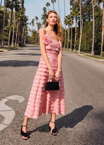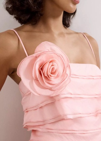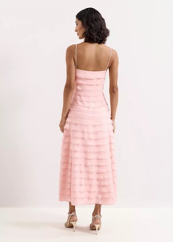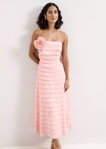 Part of our Limited Edition collection, designed for the bold, confident woman. In a gorgeous pink shade, this maxi dress is designed in a romantic A-line silhouette, with a modern square neckline and spaghetti straps. Covered with delicate layered ruffles and finished with a detachable floral corsage for added luxe, wear with neutral accessories for a high impact look.