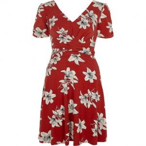 This beautiful red floral dress from River Island features a V neckline, cinched in twisted waist and fit and flare silhouette. Ideal for a special wedding, team with heels and a slim clutch for ultimate elegance.