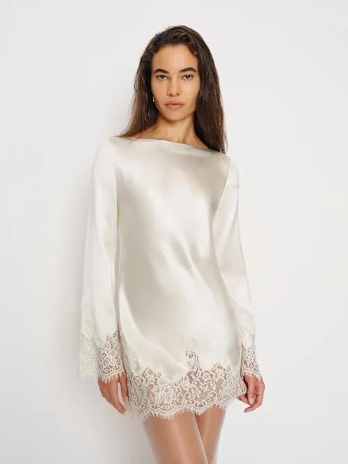 This is a medium weight silk charmeuse fabric – 100% silk. Dry clean only. More on fabric & care.