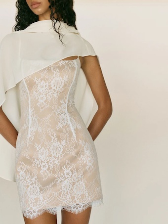 Reformation Dorinda Short Bridal Dress, Ivory White Lace