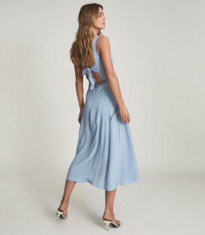 The Delilah dress comes in a blue chiffon fabrication and is detailed to ensure you steal the spotlight this party season. This style features a V neckline and is cut into a slim-fitting midi silhouette. Don’t shy away from continuing the vibrant mood via accessories, style this design with a white clutch and strappy sandals.