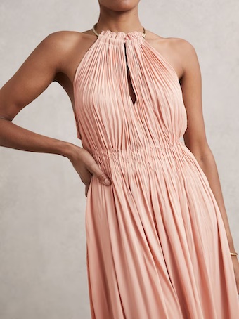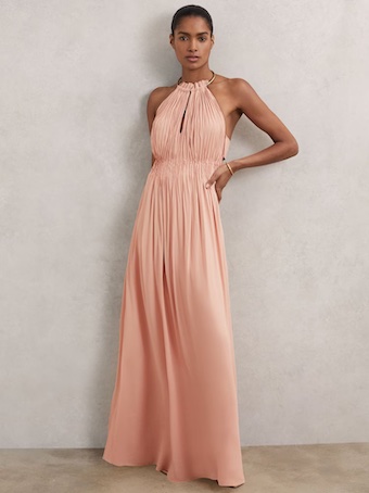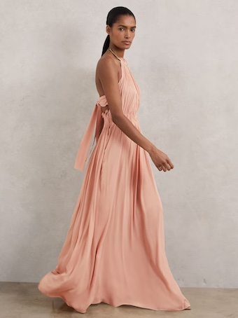 Reiss Vinnie Ring-Detail Halterneck Maxi Dress, Pink